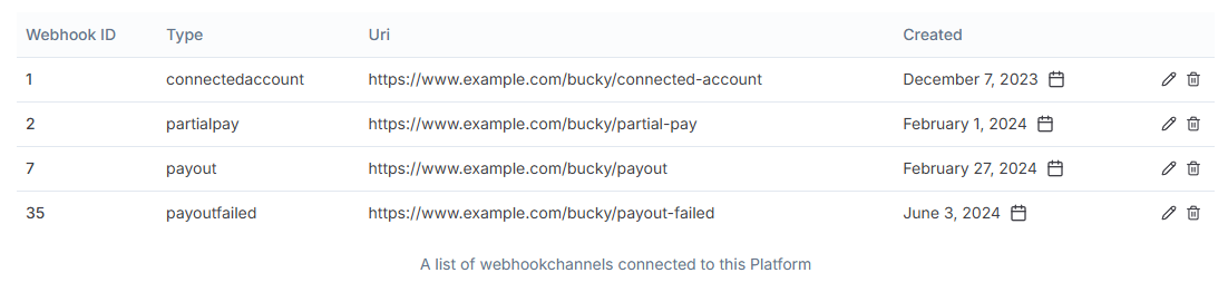 By configuring your webhook endpoints in our Platform Dashboard, you ensure that your application will always receive the necessary data directly as events occur. This seamless integration supports a more dynamic and responsive system for managing your payments and related services.